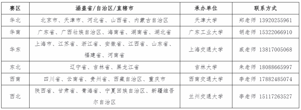 四、 赛区划分及承办单位