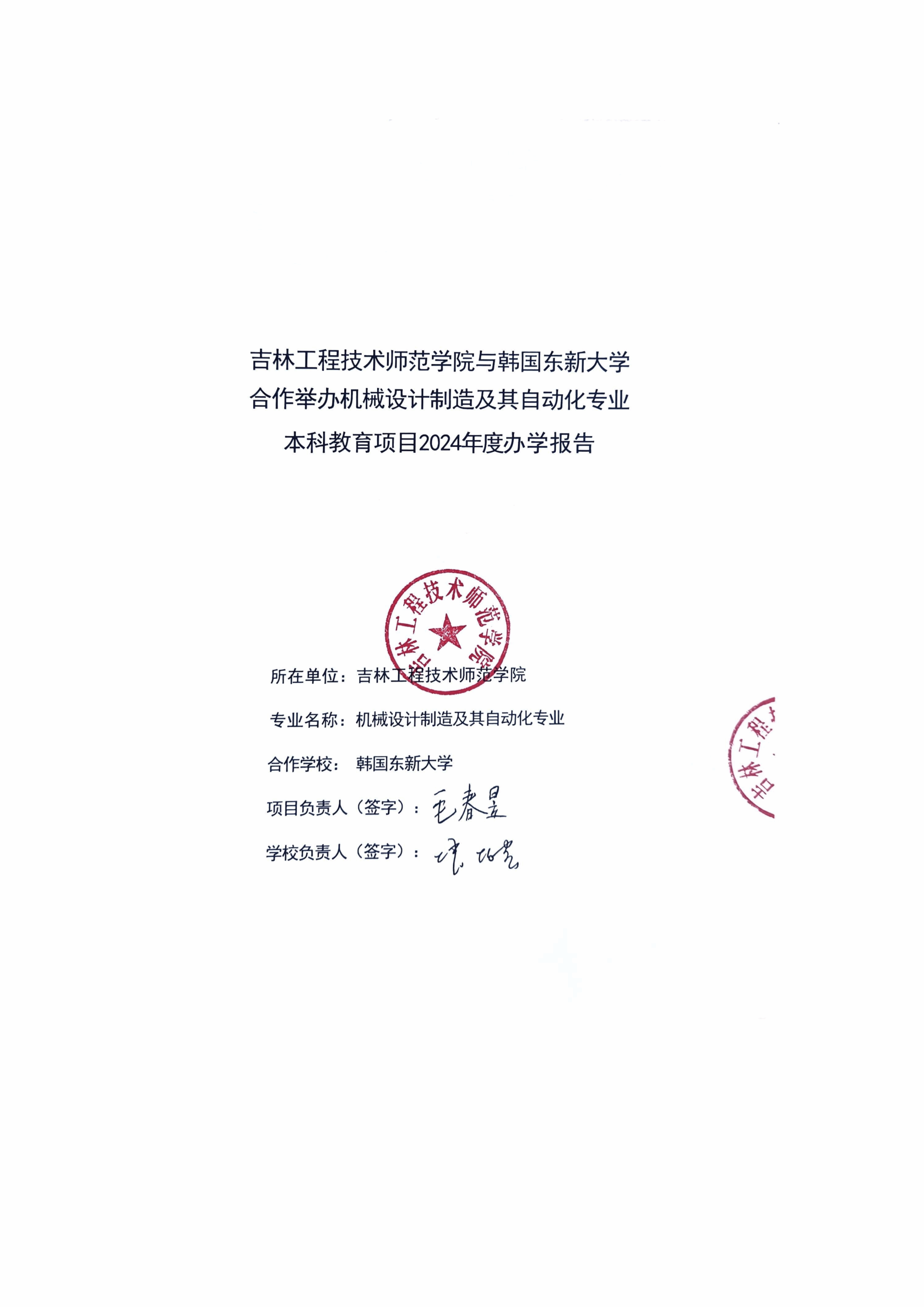 吉林工程技术师范学院2024年度中外合作办学机构(项目)办学报告